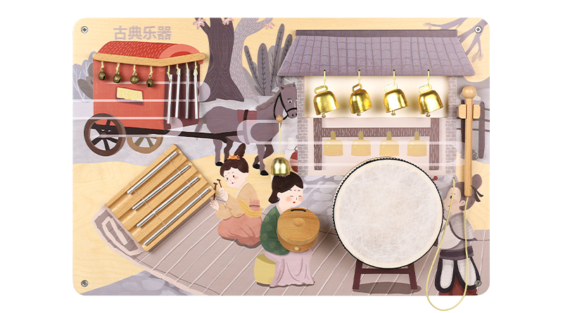 尺寸39.5*59.5CM。材质:榉木、桦木。环保水性漆;通过敲打使玩具发出音乐声,可以更好的提高孩子的音感。