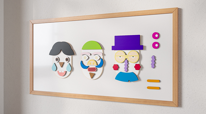 积木片,材质:椴木,白色铁皮,软磁,配置:提示卡1张,提示卡尺寸11.9*8.9cm,尺寸为22*14*0.5cm的白色的椭圆脸蛋3张,4.9*3.5*0.5cm的蓝色眼泪积木2片,3.4*0.5cm的梅花积木2片,5.9*0.5cm的蓝色月牙积木2片,5.9*2.4*0.5cm椭圆积木1片,6.4*1.2*0.5cm橙色长条积木2片,3.5cm白色眼睛积木2片,3.5cm紫色眼睛积木2片,4.4*2.9*0.5cm白色眼睛积木2片,8*7.5*0.5cm紫色帽子积木1片,18.9*8.5*0.5cm黑色头发积木1片,14*6.5*0.5cm的原木色眼镜积木1片,13.2*4.9*0.5cm的绿色积木1片,13.2*4.9*0.5cm深蓝色胡子积木1片,6.4*2*0.5cm紫色波浪积木2片,6.5*1.2*0.5cm粉色眉毛积木2片,6.4*3.1*0.5cm的粉色半圆积木1片,6.3*1.4*0.5cm的半圆积木1片,3.5*0.5cm的棕色三角形2片,共计28个表情配件。