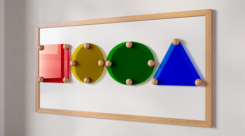 材质:彩色亚克力板,椴木,软磁,配置:提示卡一张,提示卡尺寸11.9*8.9cm,21.5cm蓝色三角形亚克力滤镜1片,含4颗原木色半圆球和4颗原木色圆柱,20cm红色正方形亚力克滤镜1片,含4颗原木色半圆球和4颗原木色圆柱,25*20cm绿色椭圆形亚克力滤镜1片,含4颗原木色半圆球和4颗原木色圆柱,直径为20cm的黄色亚克力滤镜1片,含4颗原木色半圆球和4颗原木色圆柱。共4片亚克力滤镜,16颗半圆球,16颗圆柱。